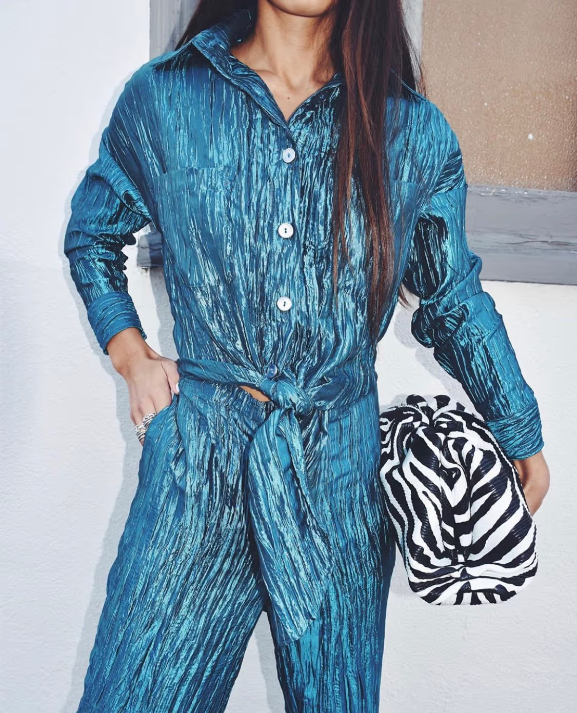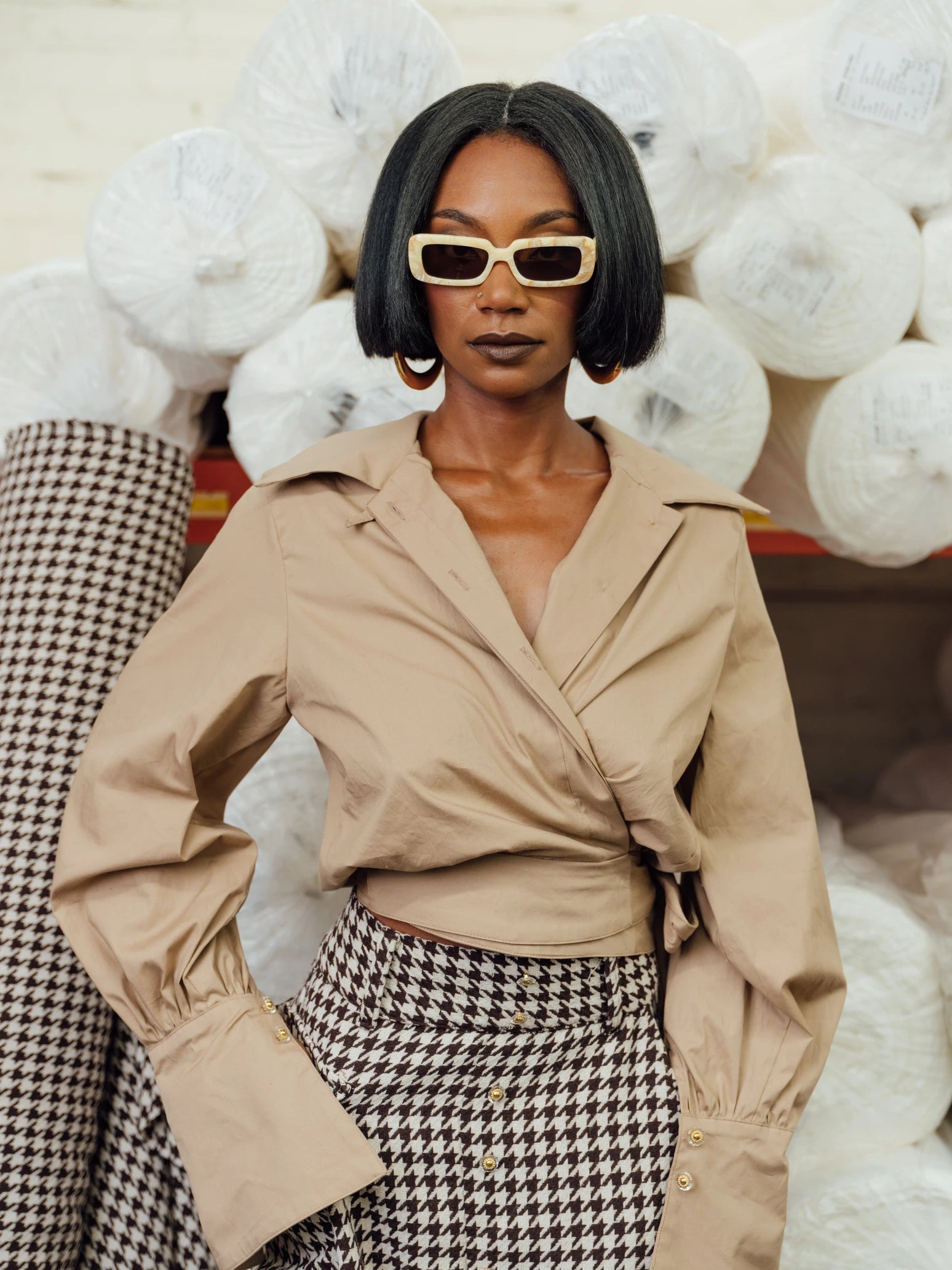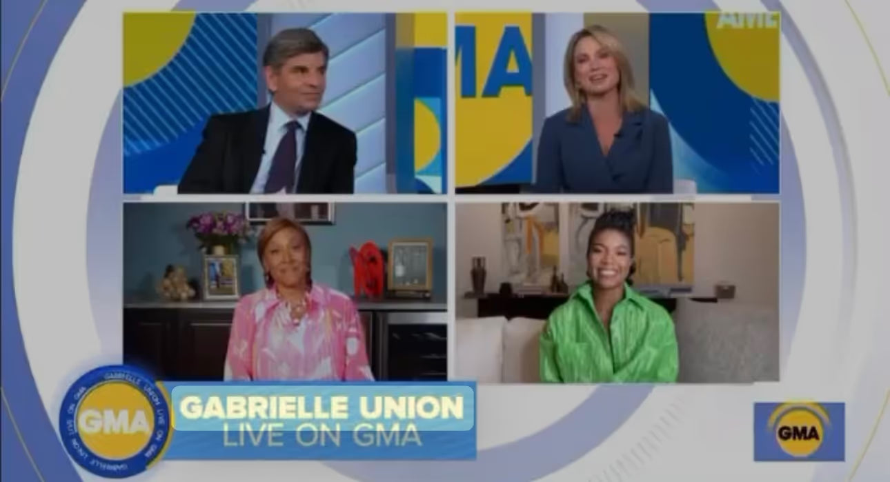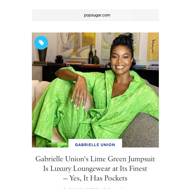 Gabrielle Union wore our signature tie front jumpsuit on Good Morning America, later featured in PopSugar highlighting the look.
